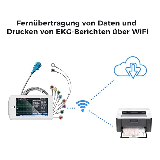• انتقال داده هوشمند: پشتیبانی از WiFi برای ارسال مستقیم داده‌ها به پزشک یا مراکز درمانی. همچنین امکان چاپ فوری گزارش ECG.