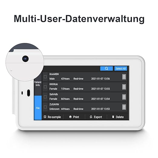 • مدیریت چند بیمار: مجهز به صفحه‌کلید و قابلیت اسکن بارکد برای مدیریت پرونده‌های متعدد. پشتیبانی از فرمت‌های مختلف از جمله PDF، BMP، DAT برای ذخیره، چاپ و ارسال گزارش‌ها.